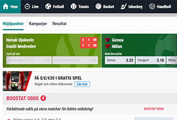 | 💻 Livebetting: | Många sporter och spelmarknader |